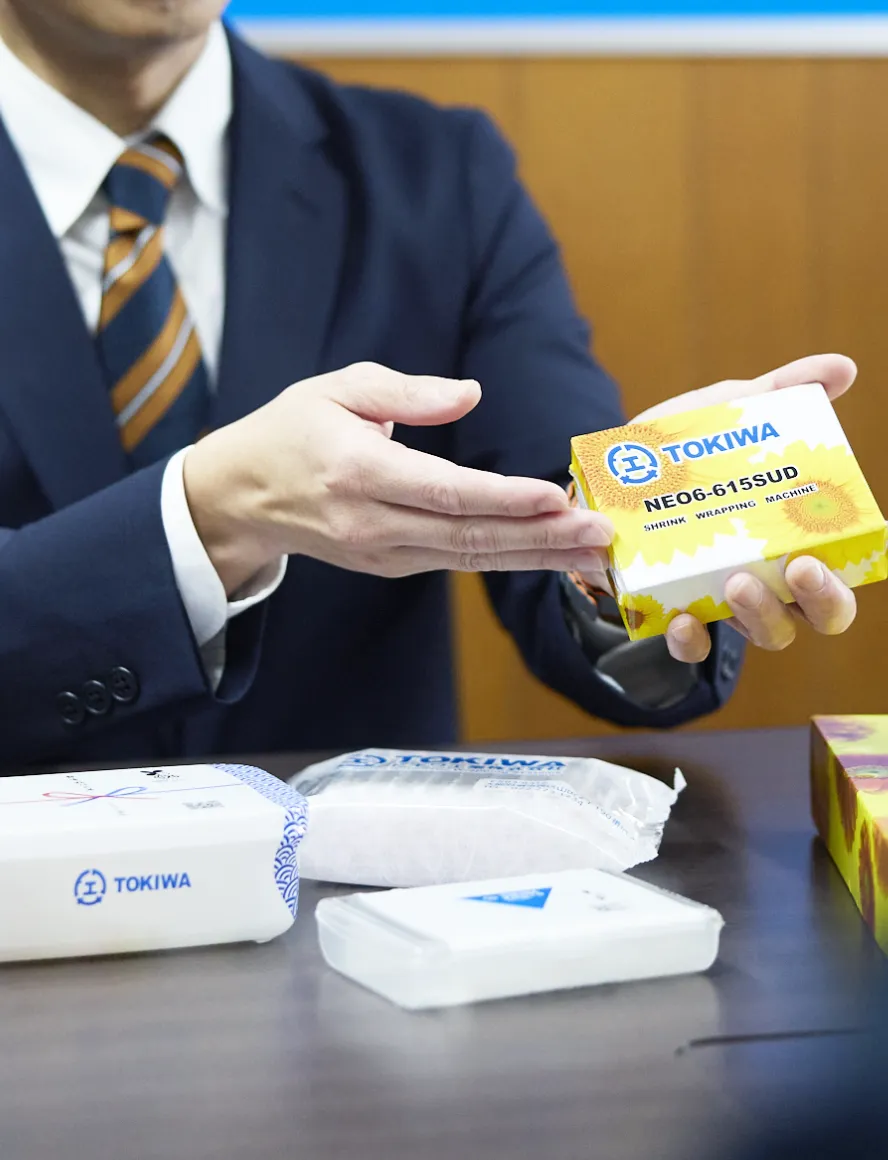 With our wrapping machines operating in over 63 nations, Tokiwa is dedicated to being a partner who understands your challenges and works with you to find effective solutions. If the goal is cost efficiency, we recommend practical solutions, not unnecessary high-end products. If the goal is increased productivity, our proposals encompass your entire wrapping process. Our philosophy is close collaboration and meaningful contribution to your success.
